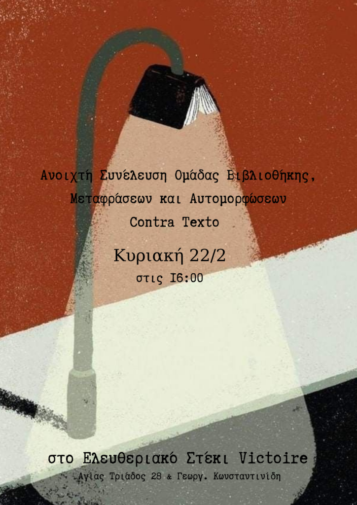 Ανοιχτή συνέλευση της Ομάδας Βιβλιοθήκης, Μεταφράσεων και Αυτομορφώσεων Contra Texto – Κυριακή 22/2 στις 16:00