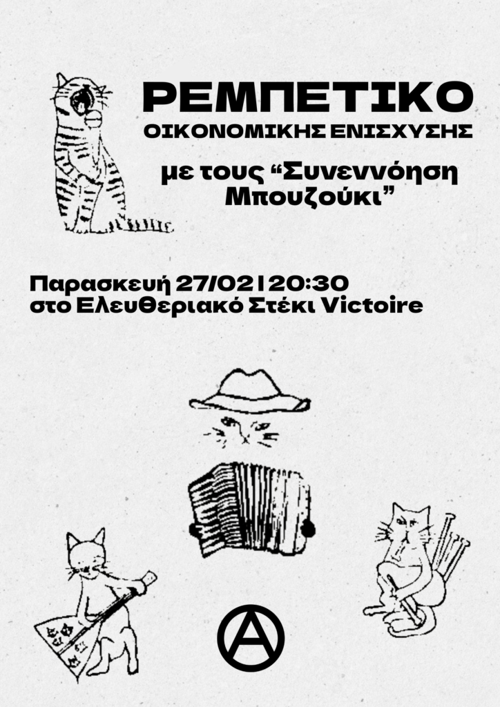 Ρεμπέτικο γλέντι οικονομικής ενίσχυσης του Ελευθεριακού Στεκιού Victoire μετά την φασιστική επίθεση στον χώρο με τους Συνεννόηση Μπουζούκι