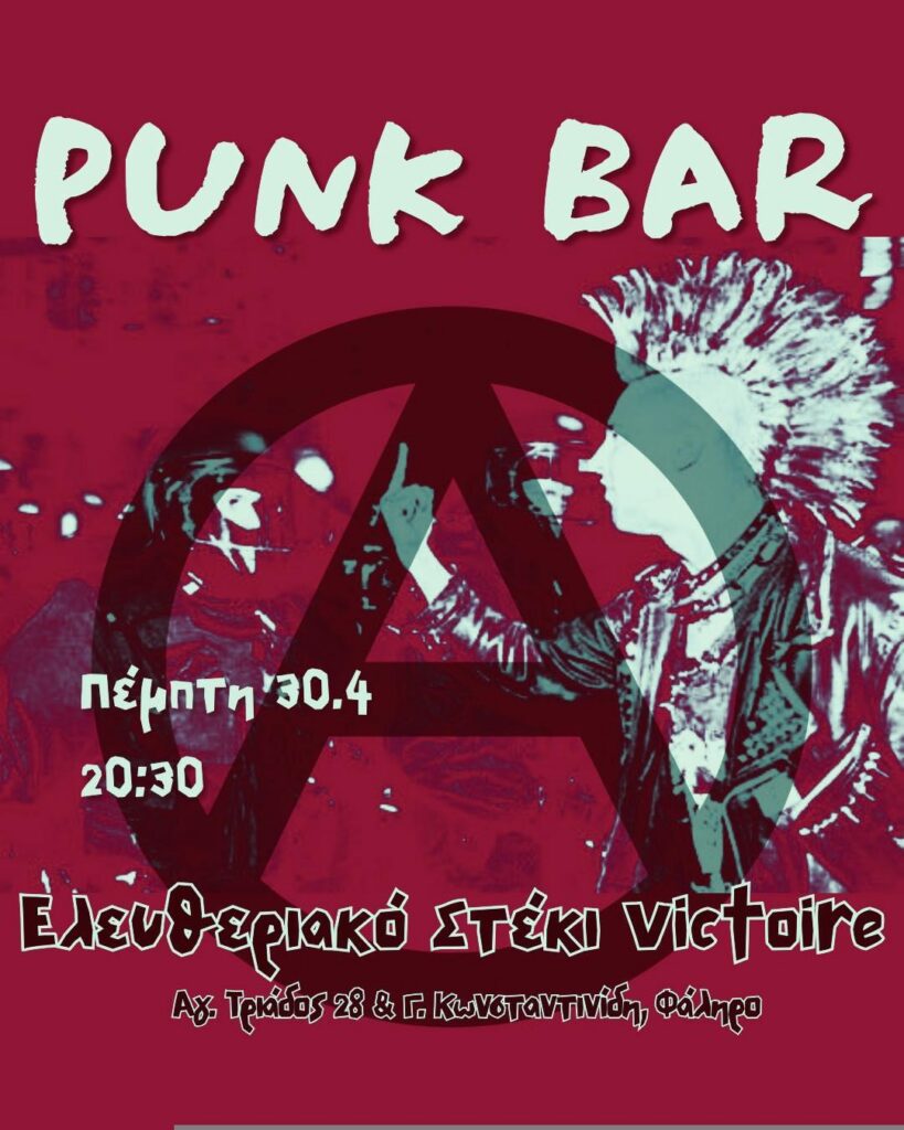 Punk bar οικονομικής ενίσχυσης του Ελευθεριακού Στεκιού Victoire – Πέμπτη 30/4 στις 20:30 Posted on 2026/04/282026/04/28 by victoire Punk bar οικονομικής ενίσχυσης του Ελευθεριακού Στεκιού Victoire – Πέμπτη 30/4 στις 20:30